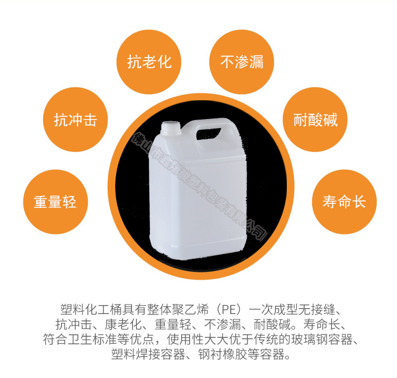 用 途:采用全新聚乙烯原料吹塑工藝制作而成,具有耐腐蝕,耐酸堿性,小口設(shè)計密封性能強,廣泛應(yīng)用于化工清潔劑,表面處理劑、輔料添加劑、飼料添加劑, 樹脂農(nóng)藥,日用化學(xué)品,聚氨酯、膠黏劑 消泡劑 電解液等各行業(yè)液體包裝。